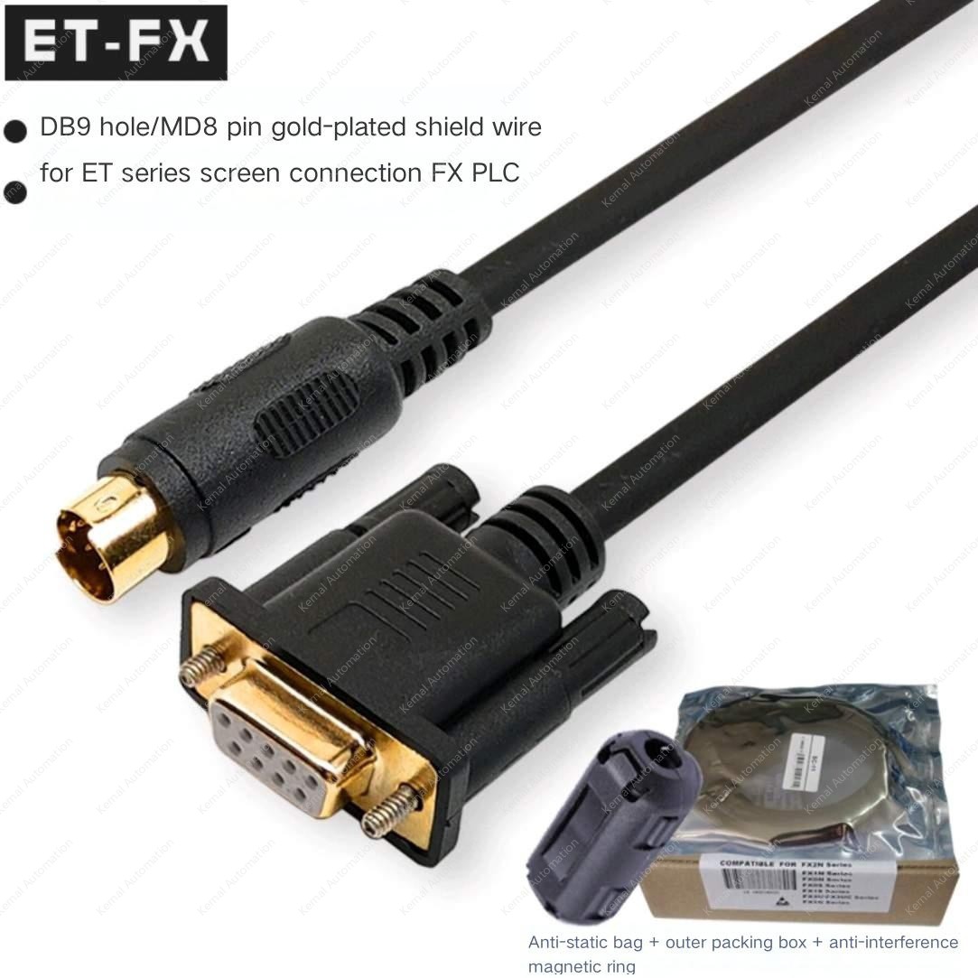 Process: nickel plating/gold plating; Wire: soft wire + shielding; Jacket: environmentally friendly PVC Buke touch screen and Mitsubishi FX series PLC connection communication download line; ET-FX: Buke ET series touch screen with Mitsubishi FX series PLC; MT54-FX: Buke MT and GL series touch screen with Mitsubishi FX series PLC